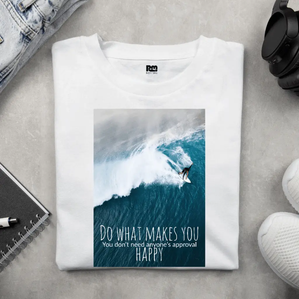 Whether you’re enjoying a day at the beach or hanging out with friends, this t-shirt serves as a reminder that happiness is not merely a destination but a journey shaped by the decisions we make daily. Being happy, you cultivate a positive mindset and enhance your overall well-being.