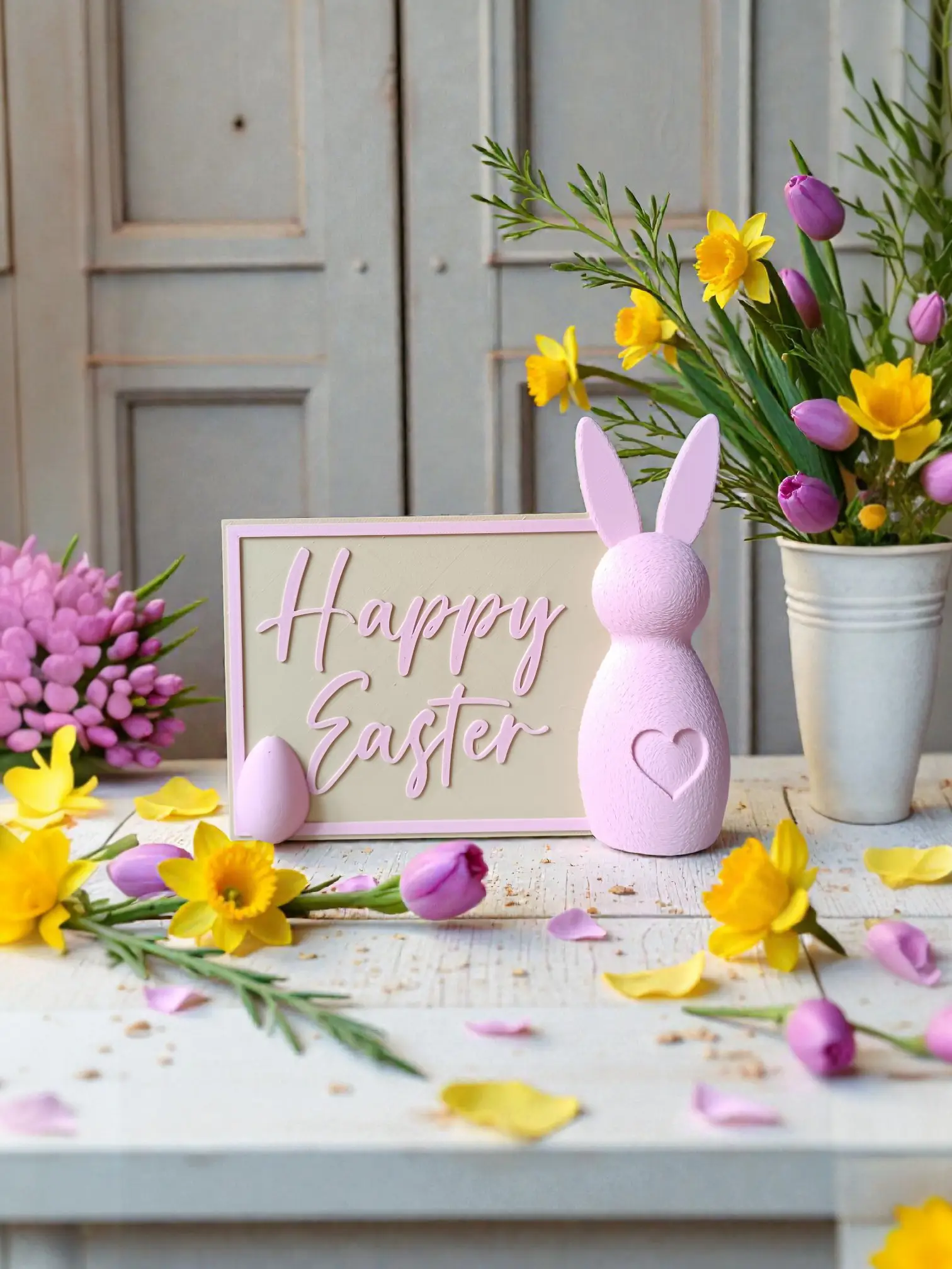 This delicate 3D printed seasonal sign captures the essence of spring through a sophisticated palette of soft pink and desert tan. Designed with a modern aesthetic, the sign features a high-relief 3D bunny silhouette that provides a tactile, sculptural quality to your holiday decor. The desert tan base offers a warm, earthy foundation that complements the delicate pink accents of the “Happy Easter” typography and the bunny’s features, making it an ideal centerpiece for rustic, farmhouse, or contemporary interior styles.