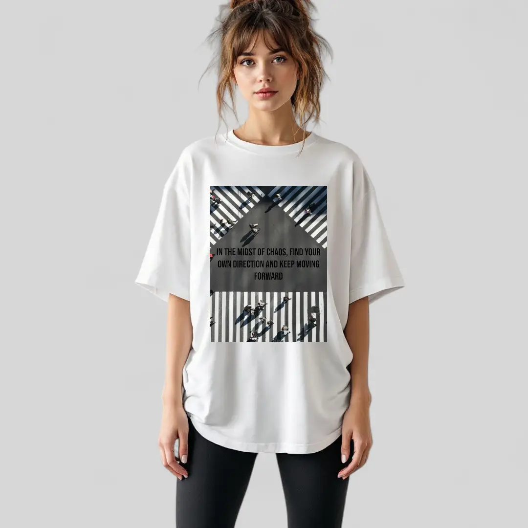 An oversized graphic printed multi color oversized recycled T-shirt made of cotton of ultimate quality, which offers absolute comfort  in your everyday wear, while making a statement with its captivating message.