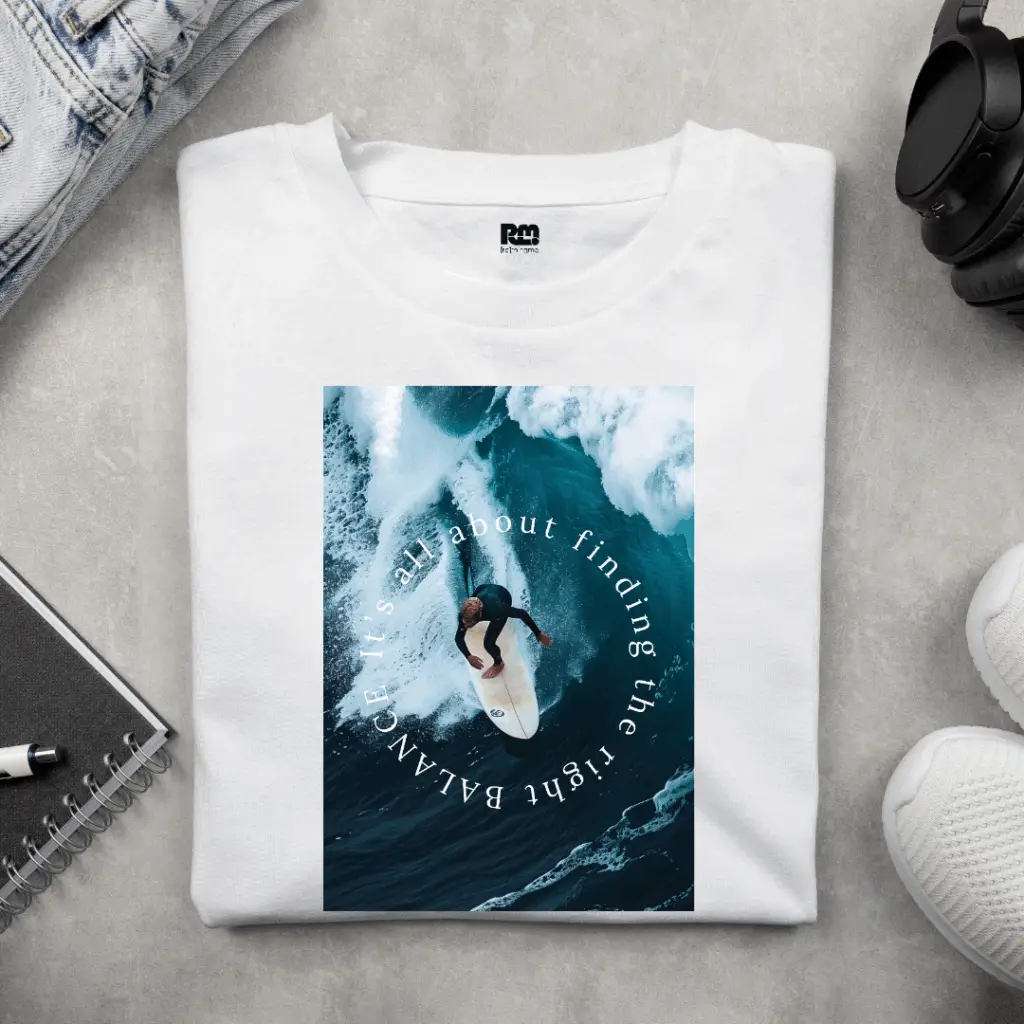 The shirt message “It’s all about finding the right balance” highlights the need for flexibility and adaptability in response to changing circumstances, allowing us to reassess our priorities and adjust our actions accordingly to maintain balance.