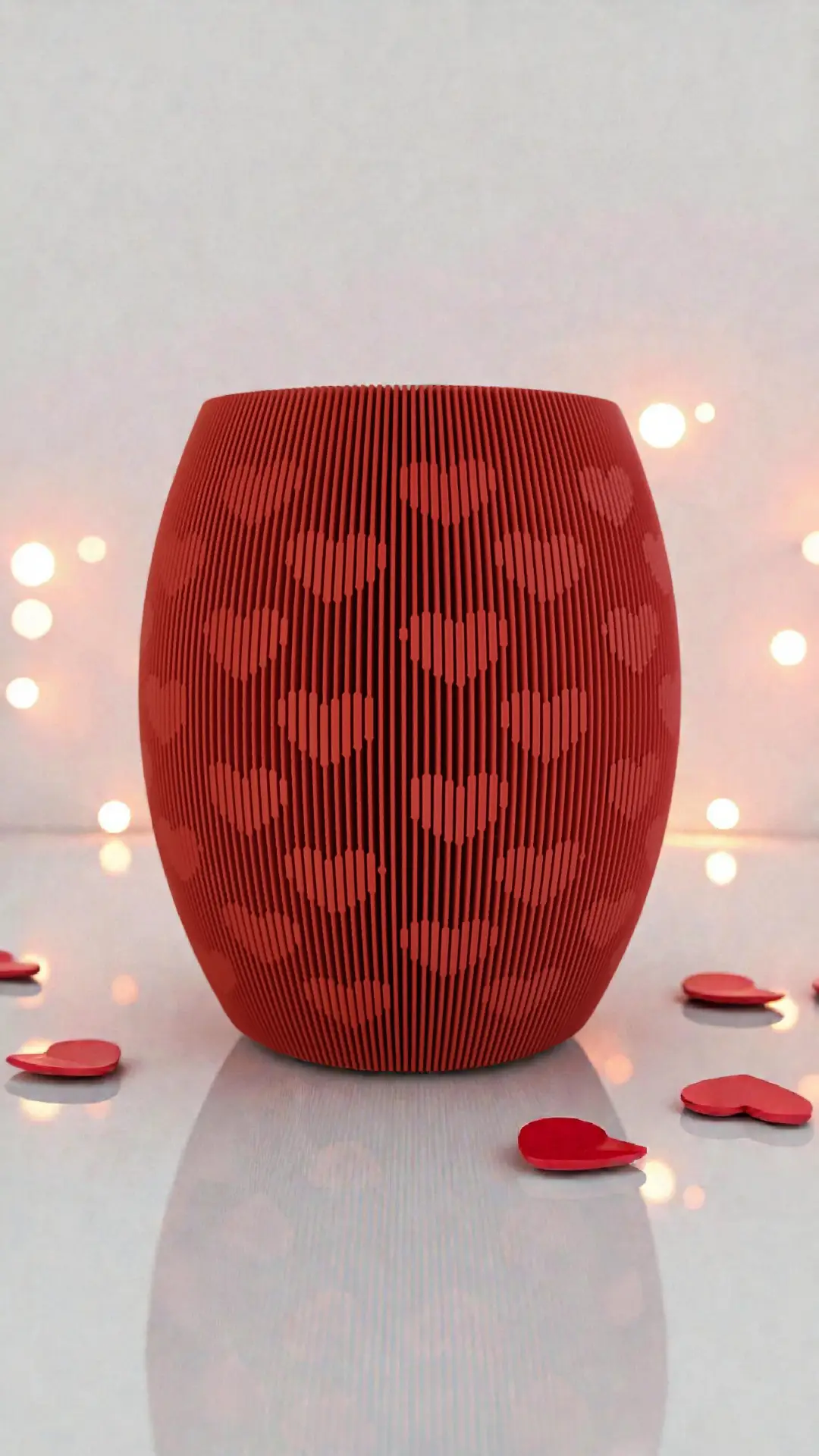 This striking 20cm tall 3D printed “Amour Vase”, is a vibrant celebration of love and modern design, with a surface covered in intricate hearts. Crafted from high-quality materials, this piece serves as a bold statement for any interior, and is perfect for Valentine’s Day.