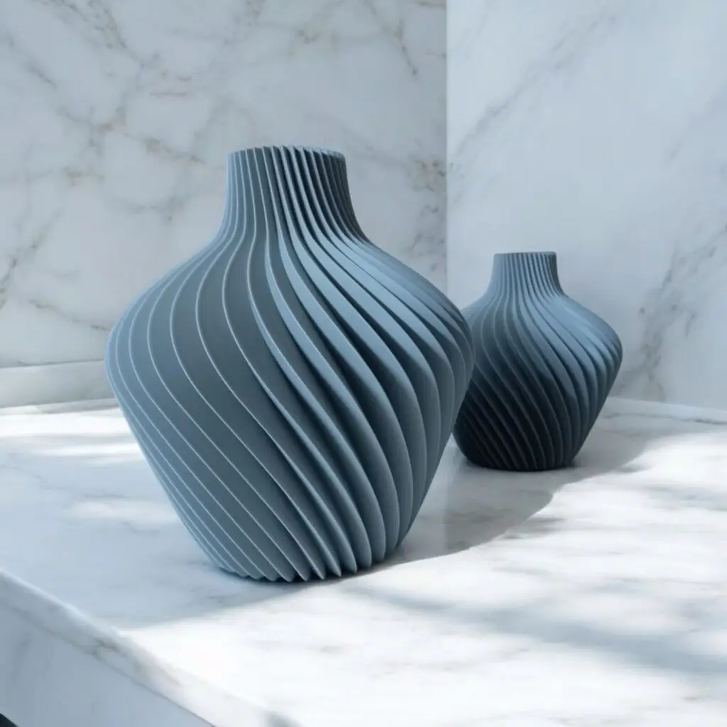 The “Fluid Shape Vase,” is a chic and modern addition to your home decor. This elegantly designed vase features a unique ribbed texture that creates an eye-catching visual appeal, making it a perfect centerpiece for any setting.