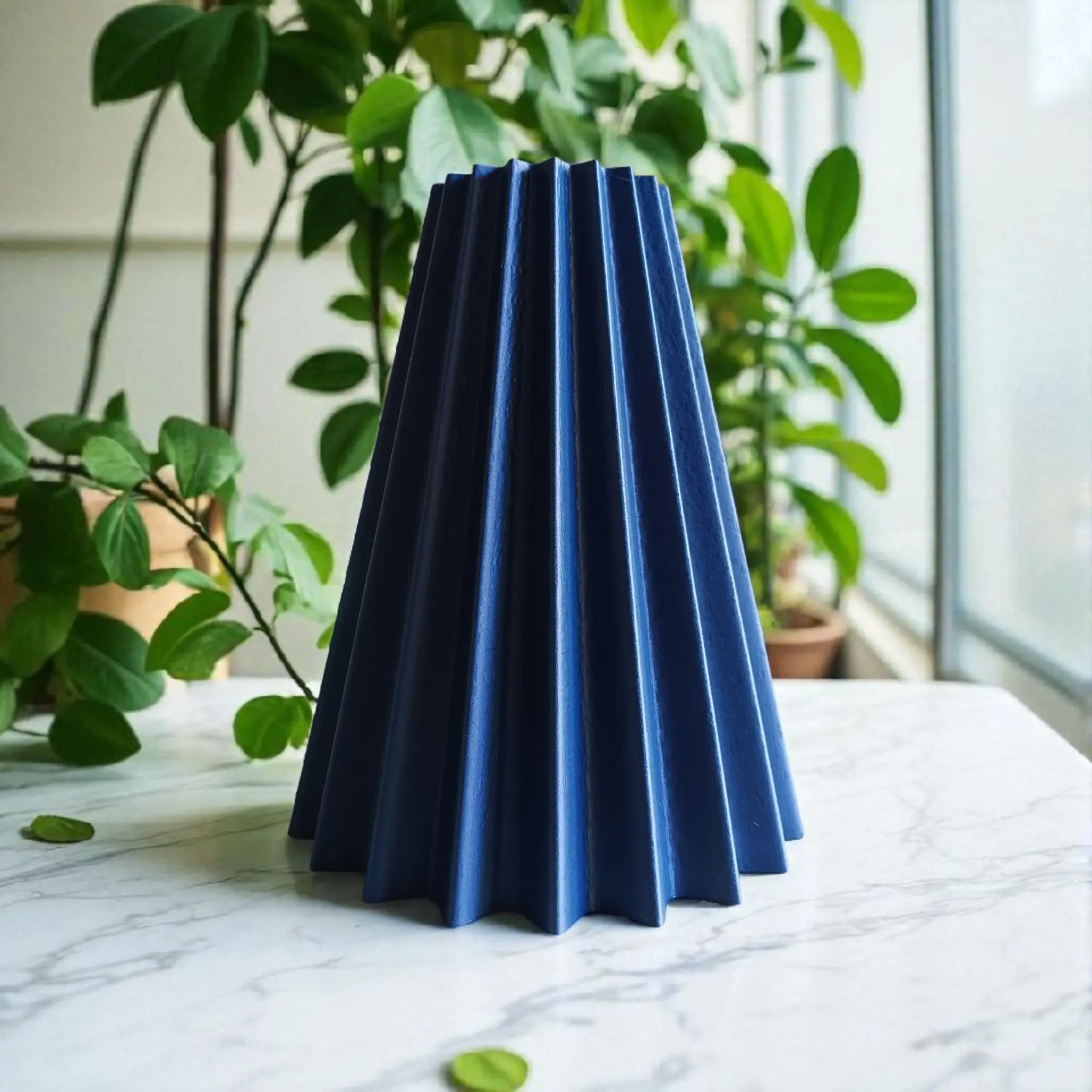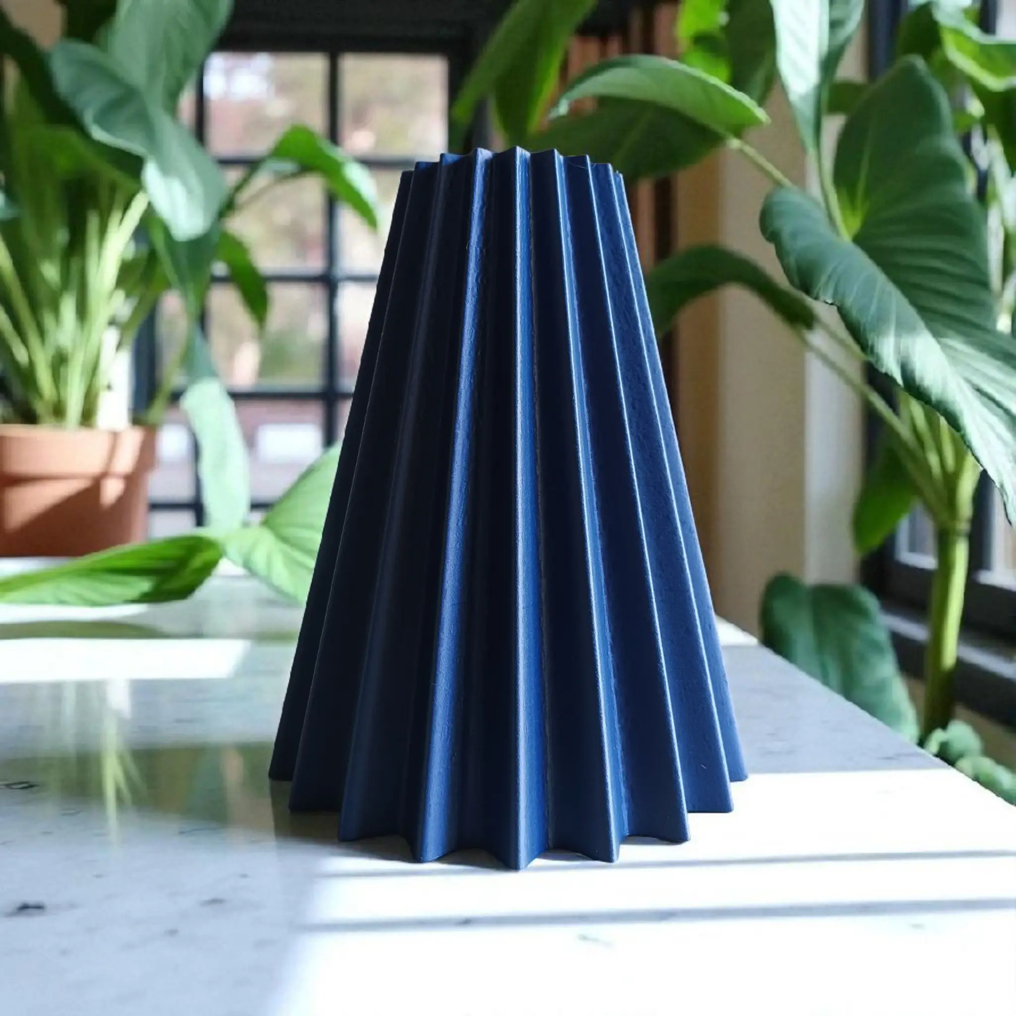 Upgrade your interior with the 3D printed “Pleated Cone” vase, a stunning 22cm tall piece with a clean, geometrically structured pleated design in a dark blue shade. This elegant vase, crafted with precision 3D printing technology, offers a modern aesthetic, perfect for displaying your floral arrangements or as a standalone sculptural decoration in any contemporary space.