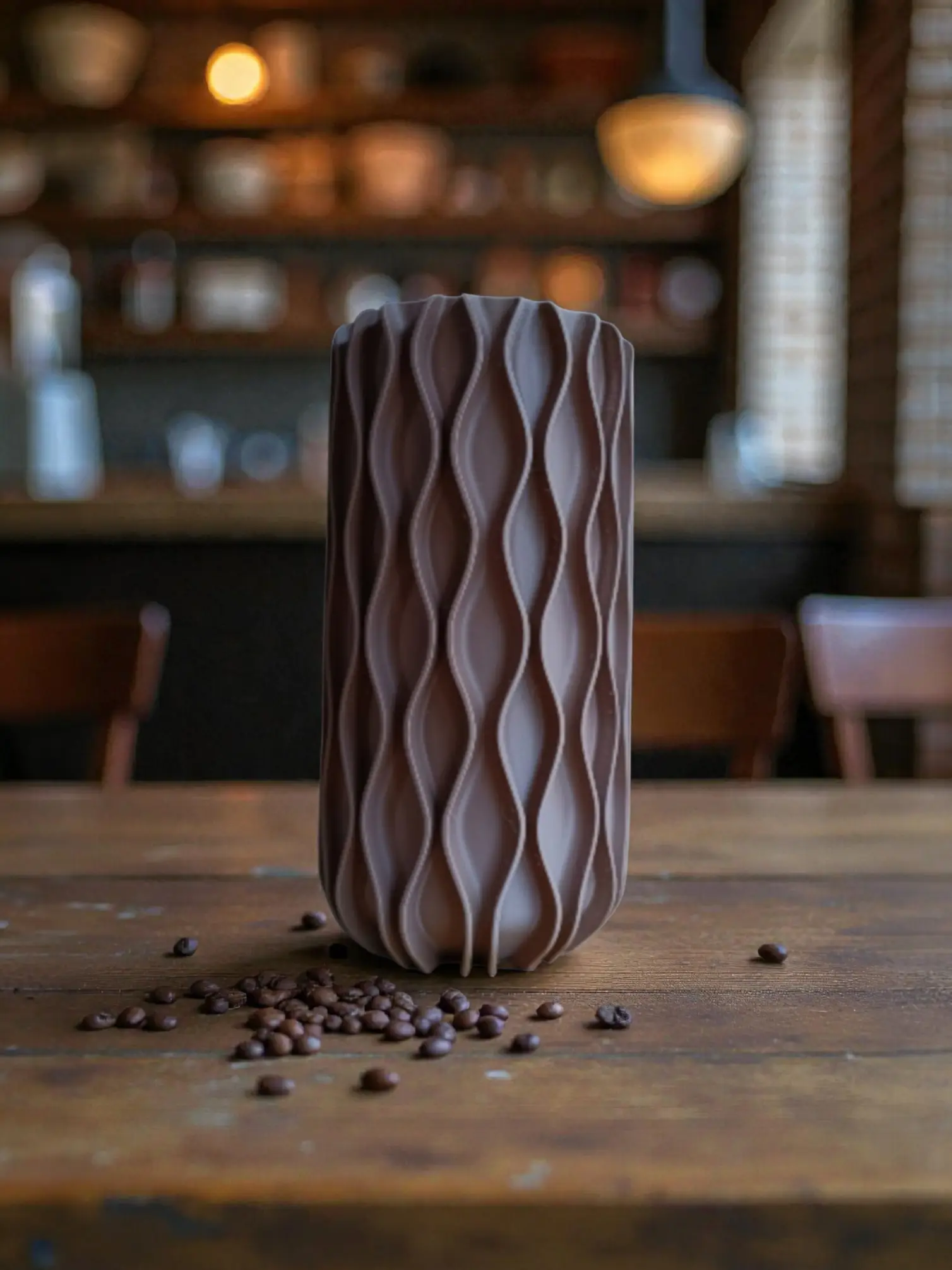 Elevate your interior with our stunning 22cm brown Waveform 3D-Printed Vase. Meticulously crafted using advanced 3D printing technology, this vase features a captivating ripple texture that adds a touch of modern artistry to any space. The deep, rich brown hue enhances its sophisticated appeal, making it a perfect standalone accent or an elegant vessel for your favorite blooms. Made from durable materials, its unique design and precise construction ensure both beauty and longevity. Embrace the harmony of contemporary design and innovative craftsmanship with this exquisite piece.